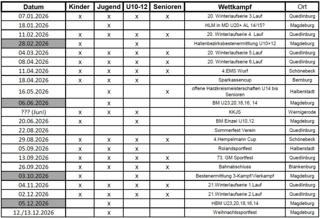 Wettkampfplanung 2026