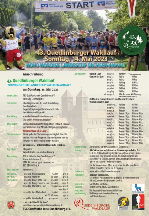 Sonderläufe gibt es für Schulen (GutsMuths-Lauf, 11:20 Uhr) und den Quedellauf für die Kitas